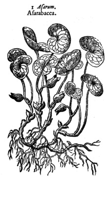 This confusion of hath the names hath been the cause, that most could not sufficiently expound themselves concerning Asarum and Baccharis; and that many things have been written amiss in many copies of Dioscorides, in the chapter of Asarum: for when it is set down in the Greek copies a sweet smelling garden herb, it belongeth not to the description of this Asarum, but to that of Baccharis: for Asarum (as Pliny saith) is so called, because it is not put into garlands: and so by that means it came to pass, that oftentimes the descriptions of the old writers were found corrupted and confused: which thing; as it is in this place manifest, so oftentimes it cannot so easily be marked in other places. Furthermore, Asarum is called in French Cabaret: in High Dutch, Hazelwurtz: in Low Dutch, Mansooren: in English, Asarabacca, Foalfoot, and Hazel-Wort.