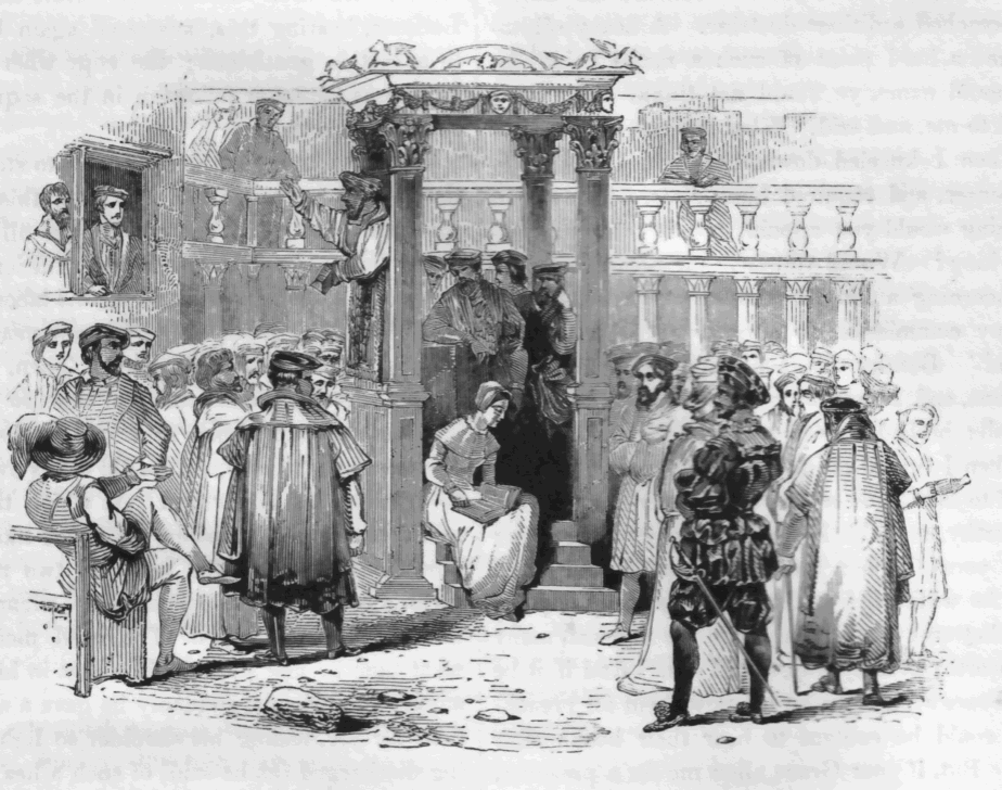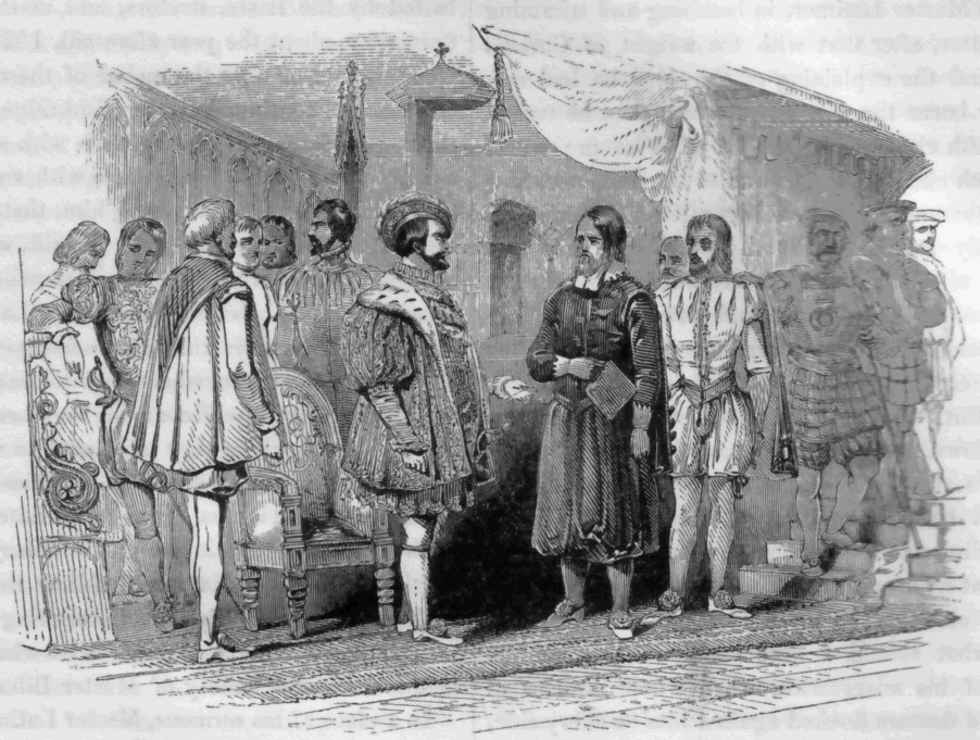 Illustration -- Latimer pleading with King Henry VIII for an innocent woman