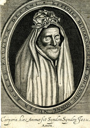 Yet it is not really the picture of a dead man: it represents the result of one of the grimmest freaks that ever entered into a pious mind. In the early part of March 1630 (1631), the great Dr. Donne, Dean of St. Paul's, being desperately ill, and not likely to recover, called a wood-carver in to the Deanery, and ordered a small urn, just large enough to hold his feet, and a board as long as his body, to be produced. When these articles were ready, they were brought into his study, which was first warmed, and then the old man stripped off his clothes, wrapped himself in a winding-sheet which was open only so far as to reveal the face and beard, and then stood upright in the little wooden urn, supported by leaning against the board. His limbs were arranged like those of dead persons, and when his eyes had been closed, a painter was introduced into the room and desired to make a full-length and full-size picture of this terrific object, this solemn theatrical presentment of life in death. The frontispiece of Death's Duel gives a reproduction of the upper part of this picture. It was said to be a remarkably truthful portrait of the great poet and divine, and it certainly agrees in all its proportions with the accredited portrait of Donne as a young man.