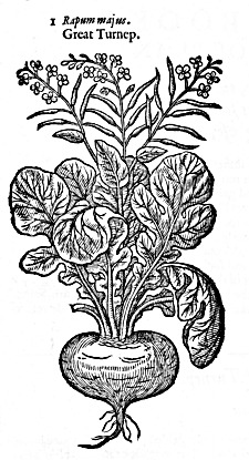 A. The bulbous or knobbed root, which is properly called Rapum or Turnip, and hath given the name to the plant, is many times eaten raw, especially of the poor people in Wales, but most commonly boiled. The raw root is windy, and engendereth gross and cold blood; the boiled doth cook less, and so little, that it cannot be perceived to cool at all, yet it is moist and windy.