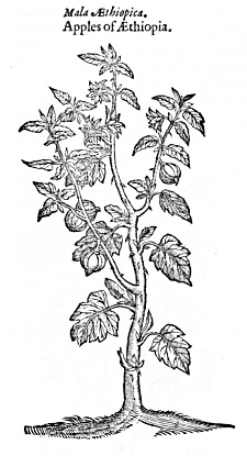 In English we have thought good to call it the Ęthiopian Apple, for the reason before alleged: in Latin, Mala ęthiopica: of some it hath been thought to be Malinathalla. This is the Solanum pomiferum of Lobel and others.