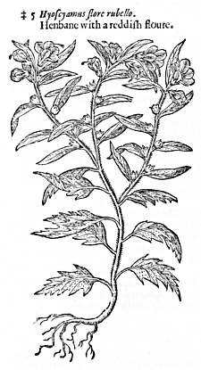 Henbane is called of the Latins, Apollinaris, and Faba suilla: the Arabians, as Pliny saith, Altercum: of some, Faba iovis, or Jupiter's bean: of Pythagoras, Zoroastes, and Apuleius Insana, Alterculam, Symphoniaca, and Calicularis: of the Tuscans, Fabulonia, and Faba lupina: of Matthæus Sylvaticus, Dens Caballinus, Milimandrum, Cassilago: of Iacobus de Manliis, Herba pinnula: in shops it is called Insquiamus, and Hyoscyamus: in English, Henbane: in Italian, Hyosquiamo: in Spanish, Velenno: in High Dutch, Bilsen kraut: in French, Hannebane, Endormie: the other is called Hyoscyamus albus, or white Henbane.