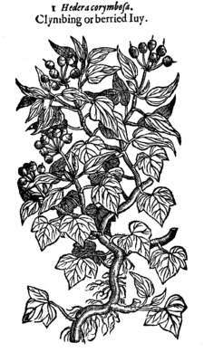 There be two kinds of Ivy, as Theophrastus witnesseth, reckoned among the number of those plants which have need to be propped up; for they stand not of themselves, but are fastened to stone walls, trees, and such like, and yet notwithstanding both of a woody substance, and yet not to be placed among the trees, shrubs, or bushes, because of the affinity they have with climbing herbs; as also agreeing in form and figure with many other plants that climb, and are indeed simply to be reckoned among the herbs that clamber up. But if any will cavil, or charge me with my promise made in the beginning of this history, where we made our division, namely, to place each plant as near as may be in kindred and neighbourhood; this promise I have fulfilled, if the curious eye can be content to read without rashness those plants following in order, and not only this climbing Ivy that lifteth herself to the tops of trees, but also the other Ivy that creepeth upon the ground.